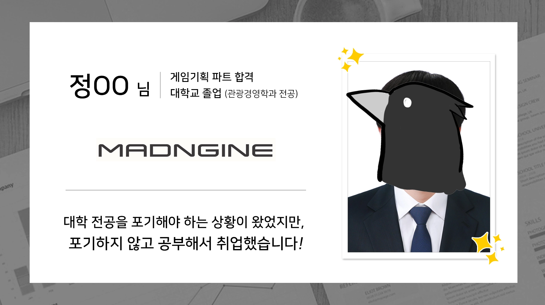 대학을 졸업할 때 쯤, 제가 하고 있던 모바일 게임들이 연달아 1주년을 맞이하며 특별 방송과 행사를 진행 했는데 전 세계 사람들이 오프라인, 온라인 게임 행사에 참여하는 모습을 보며 게임업계에 관심을 가지게 됐고, 그 중에서도 재미를 고민한다는 포지션인 게임 기획을 선택했습니다.