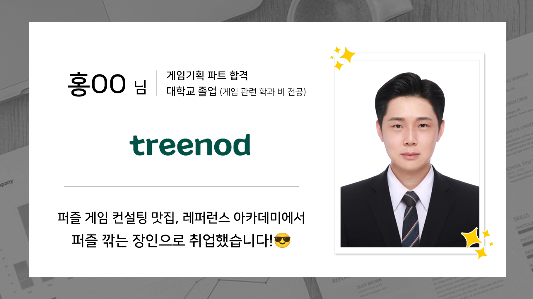 퍼즐 게임회사 취업을 컨설팅 해주는 학원이 잘 없는데… 레퍼런스 아카데미에서 퍼즐 게임회사에 준비할 때 필요한 문서, 프로그램을 가르쳐주고 취업 전략까지 꼼꼼하게 다 잡아줘서 퍼즐 깎는 장인으로 취업할 수 있었습니다.
