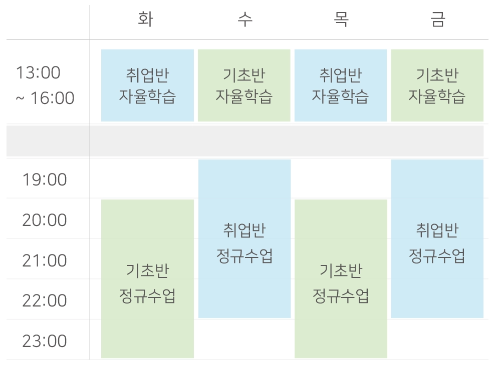 ※ 해당 시간표는 학원 사정에 의해 변경될 수 있습니다.