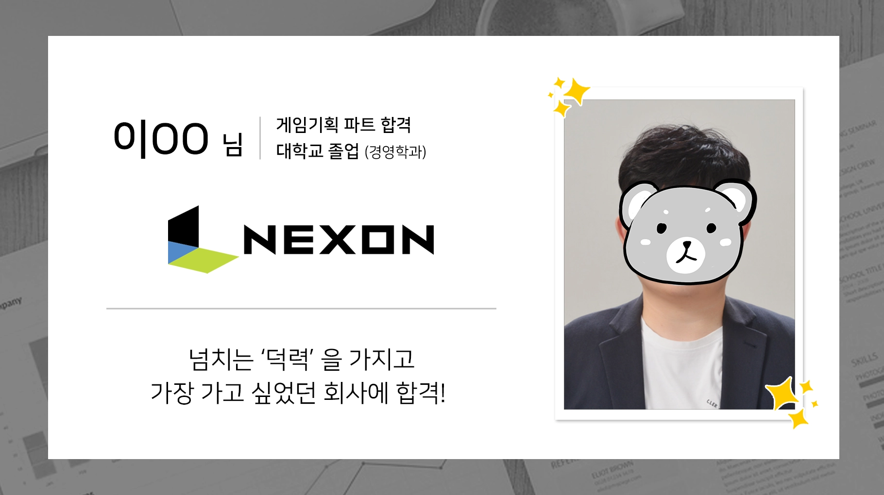대학 조별 과제로 알게 된 ‘게임 기획자’ 라는 직군에 관심을 가졌고, 원래도 덕질을 좋아해서 이 길을 도전했습니다. 1년 넘는 노력이 좋은 결과로 보답 받아서 기쁩니다!